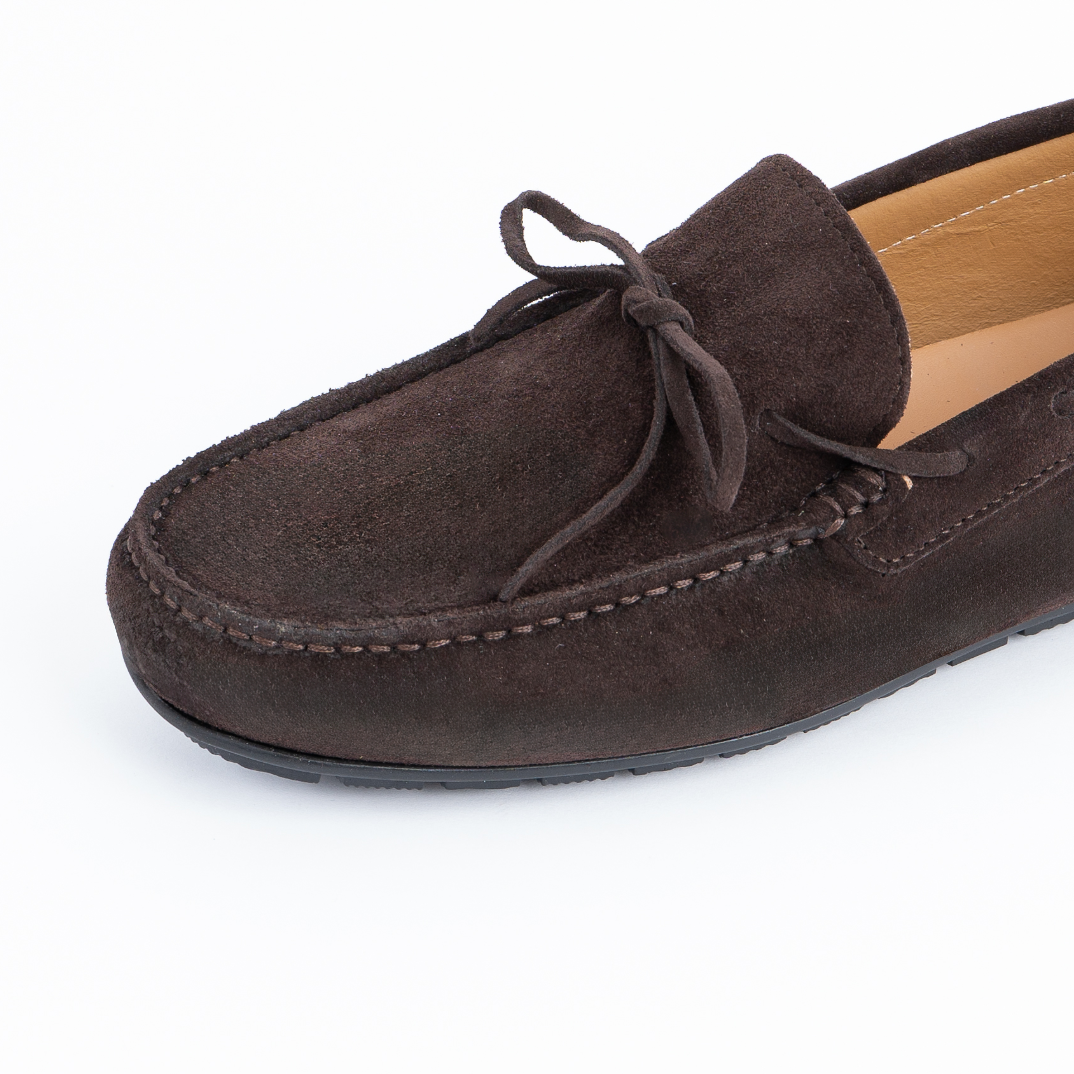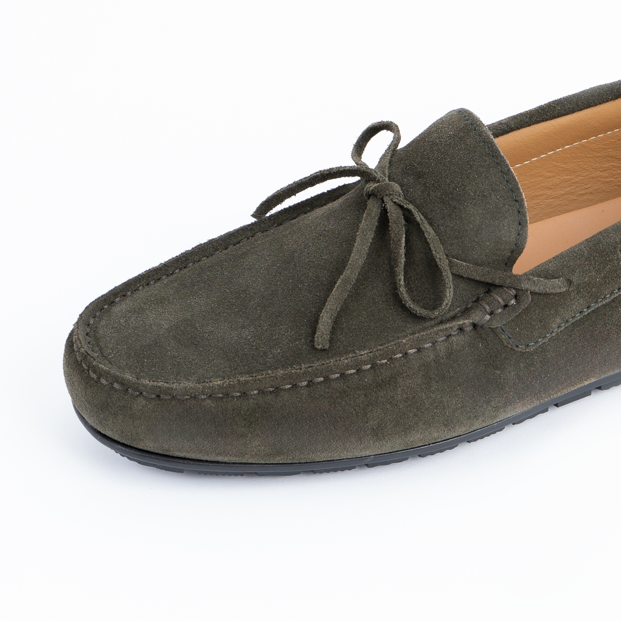 Kruizas mokasinai iš zomšos su raišteliais, guminiu padu